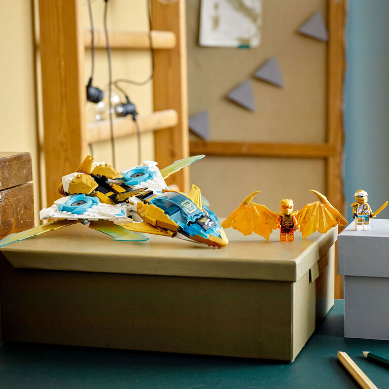 - Kids can soar into the sky for thrilling aerial adventures with NINJAGO Zane's Golden Dragon toy plane to play out good vs. evil battles.